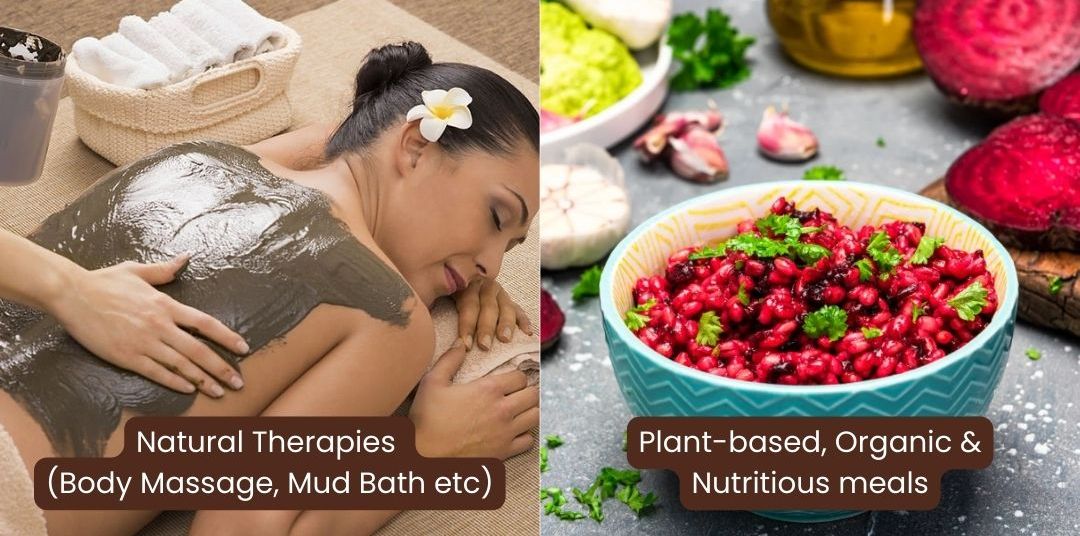 - 3:00 to 5:00 PM - Therapies - Body Massage/ Mud Therapy/ Hydrotherapies as per Instructions