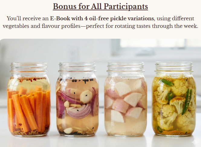 In this special LIVE workshop, learn about 5 oil-free Pickle Making that are: